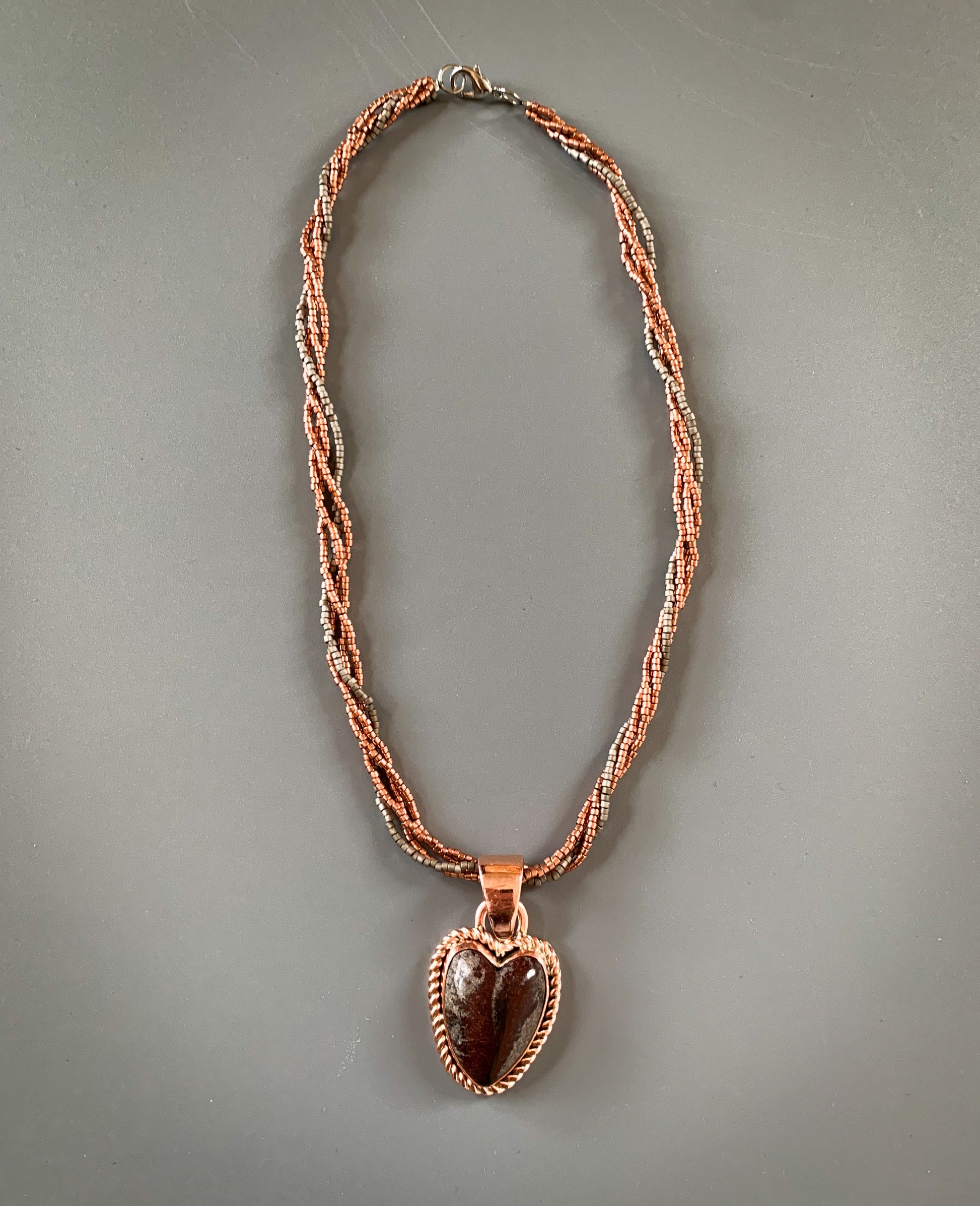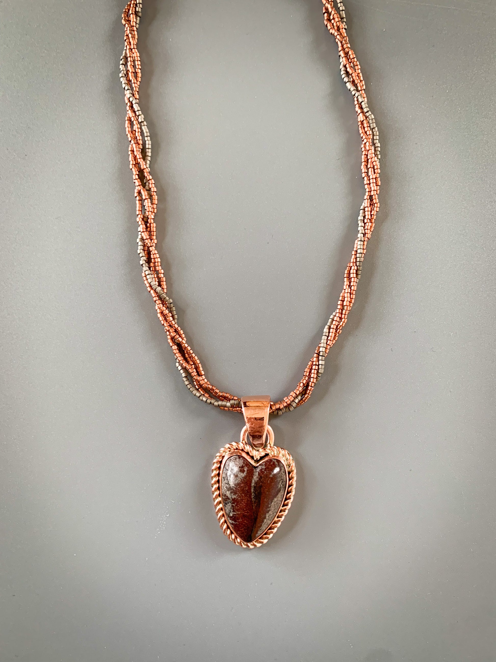 Heart-shaped West Texas Stone shaped set in copper.